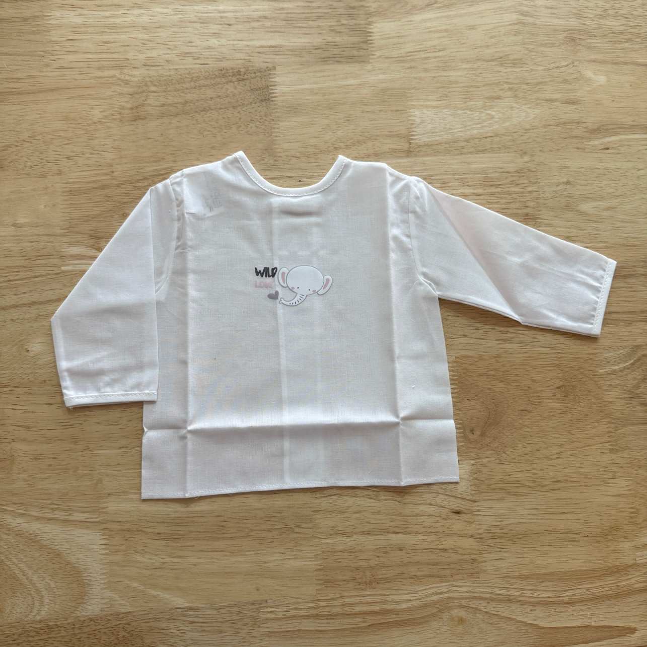 Está confeccionada en algodón 100% de alta calidad, pensado especialmente para respetar y proteger la delicada piel del recién nacido. Es una camiseta de manga larga, adecuada para cualquier época del año, y corresponde a la talla única de recién nacido.