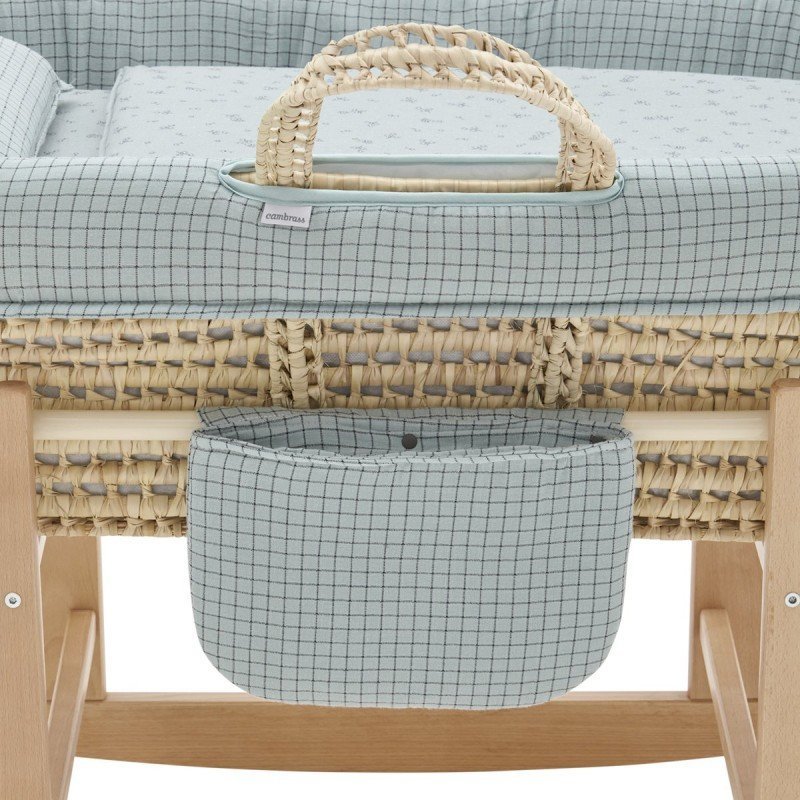 La colección de moisés Mio Cuco es la más exclusiva de moisés del mercado, toda diseñada y fabricada por Cambrass, la colección para nuestros bebés más selectos. Incluye un cojín y un práctico bolsillo para poder guardar, sonajeros, muselinas,& . El moisés de palma acolchado de Cambrass + patas de madera, está indicado para los primeros meses de vida del bebé y gracias a sus asas su trasporte es muy sencillo. Consta de una base de mimbre, colchón, colcha, cojín y vestidura. Además, cuenta con todos los certificados que garantizan la seguridad del bebé velando por su salud ya que el mimbre del moisés está tratado para la eliminación de pequeñas larvas de psocópteros que en determinadas ocasiones se encuentran en las hojas de palma utilizadas en la fabricación de los moisés. Este capazo es adecuado para niños que no pueden sentarse por si solos, girarse y que no pueden empujarse a si mismos con sus manos y rodillas. Máximo peso del niño: 9kg. Cumple la norma Normativa: UNE-EN 1466: 2015 Fabricado en España. Por Cambrass