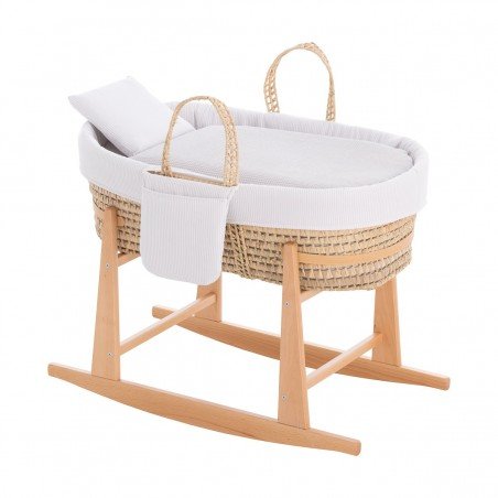 La colección de moisés Mio Cuco es la más exclusiva de moisés del mercado, toda diseñada y fabricada por Cambrass, la colección para nuestros bebés más selectos. Incluye un cojín y un práctico bolsillo para poder guardar, sonajeros, muselinas,& . El moisés de palma acolchado de Cambrass + patas de madera, está indicado para los primeros meses de vida del bebé y gracias a sus asas su trasporte es muy sencillo. Consta de una base de mimbre, colchón, colcha, cojín y vestidura. Además, cuenta con todos los certificados que garantizan la seguridad del bebé velando por su salud ya que el mimbre del moisés está tratado para la eliminación de pequeñas larvas de psocópteros que en determinadas ocasiones se encuentran en las hojas de palma utilizadas en la fabricación de los moisés. Este capazo es adecuado para niños que no pueden sentarse por si solos, girarse y que no pueden empujarse a si mismos con sus manos y rodillas. Máximo peso del niño: 9kg. Cumple la norma Normativa: UNE-EN 1466: 2015 Fabricado en España. Por Cambrass