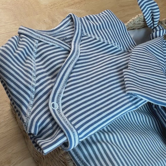 Primera Puesta Rayas Azul Algodón Orgánico